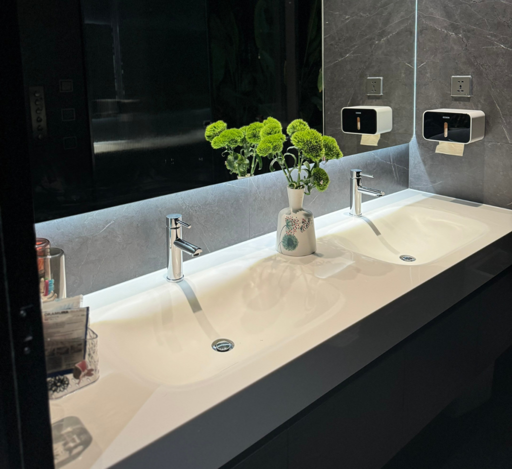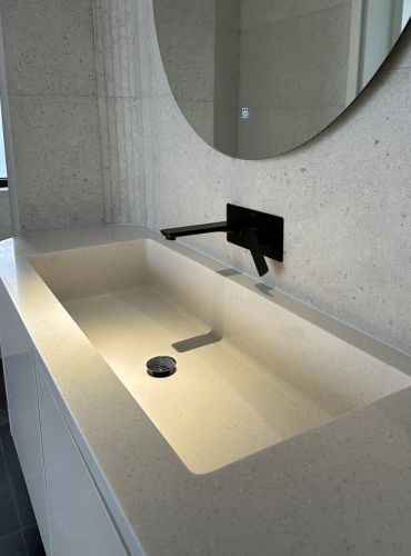 SẢN PHẨM LAVABO NỔI ĐẶT BÀN Được làm từ Đá Solid Surface. Với nhiều kiểu dáng lavabo nổi với thiết kế độc đáo và sang trọng. LAVABO ÂM BÀN Với ưu điểm liền khối không mối giữa chậu và mặt bàn đá Solid Surface. BỒN TẮM Được tạo ra từ đá Solid Surface nhập khẩu. Đa dạng kiểu dáng bồn tắm sang trọng và hiện đại. Lavabo Liền Khối - Chống Thấm Ố GIỚI THIỆU VỀ ĐÁ SOLID SURFACE Cấu tạo: Là vật liệu cao cấp, được tạo thành từ hỗn hợp bột đá tự nhiên, nhựa Acylic và chất tạo màu. Được nhập khẩu nguyên tấm từ Hàn Quốc.Ưu điểm đá Solid Surface:– Liền mạch, không đường mối nối.– Kháng khuẩn, dễ vệ sinh.– Uốn cong, dễ tạo hình dáng.– Chống thấm, chống ố.Ứng dụng đá Solid Surface:– Làm mặt đá bếp, bàn đảo, vách dựng– Mặt quầy lễ tân– Làm chậu lavabo, mặt lavabo… Lavabo Âm bàn BẢNG MÀU ĐÁ SOLID SURFACE Đá AV-019 Sun Cloud Đá AV-021 Forest Path Đá AV-022 Ariston Đá ELV-120 Springs Đá ELV-379 Sparkle Waves Đá ELV-268 Luccent Magnalia Đá C-100 Crystal Cream Đá C-106 Beige Mood Đá C-107 Primo